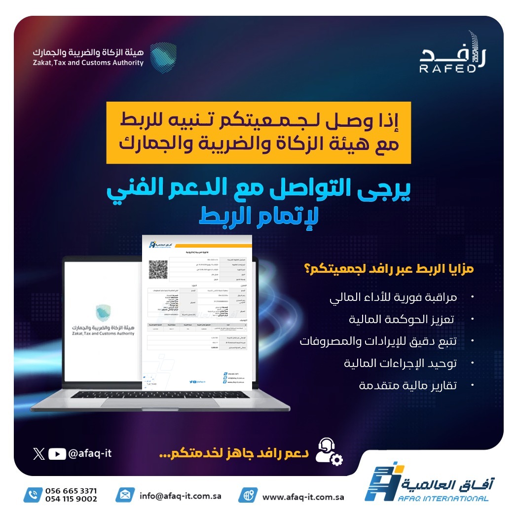 نظام رافد قدم تجربة مميزة لإدارة الجمعية من نواحى متعددة مثل الادارة التنفيذية و الادراة المالية و ادارة الخدمة المجتمعية و غيرها من الادارات