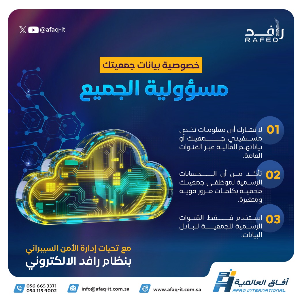 نظام رافد نقلة رقمية لجمعيتنا اختصر الوقت والجهد وجمع بين الواقع والمأمول وفتح لنا اّفاق جديدة للتحول الرقمى.